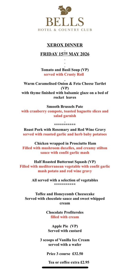 REUNION Dinner for all ex Rank Xerox / Xerox Mitcheldean employees – 15th MAY 2026 – 1800hrs